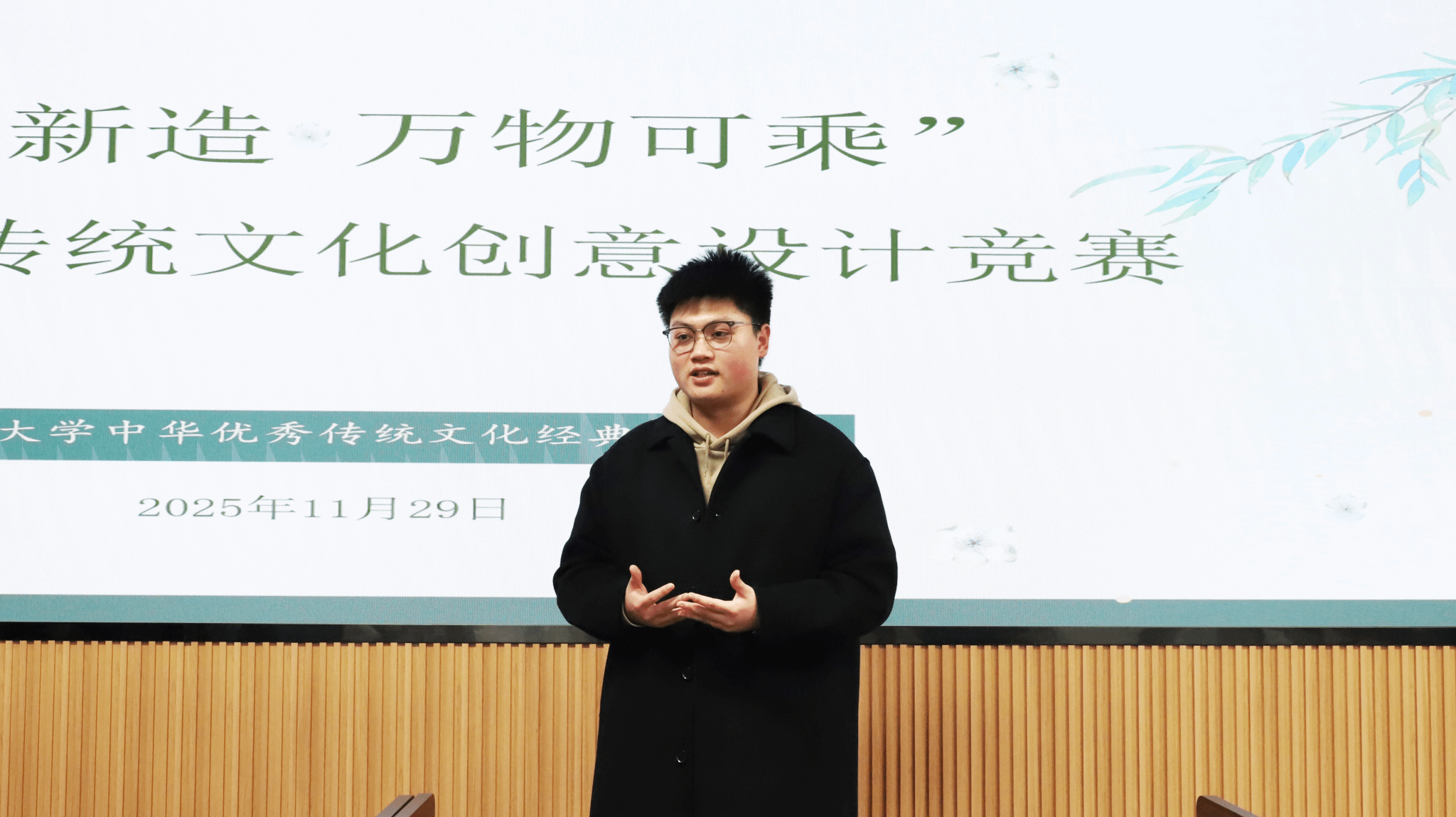 为深入学习贯彻习近平文化思想,推动中华优秀传统文化在校园内实现创造性转化与创新性发展,引导青年学生厚植文化自信、传承非遗文脉,11月29日,“非遗新造·万物可乘”中华优秀传统文化创意设计竞赛在必发集团welcome会议室顺利举办。中华优秀传统文化经典研习社指导教师任智萍、赵海燕老师和学生社团联合会主席马凯担任评委,13组优秀选手同台竞技,用创意为非遗注入时代活力。